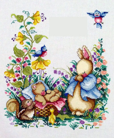 | 誕生サンプラーです。 息子の誕生と共に完成させたかったのですが いろいろあって3年半ほどかかりました(^^ゞ この図案はネットで見て、ずっと気になってて、 オークションでやっとGETできてうれしかったです(*´▽`*) 本当にかわいいんですv 上の空白部分に名前や生年月日を入れられます。 実際の完成版には名前と生年月日が入ってますv お気に入りです(*´▽`*)b |