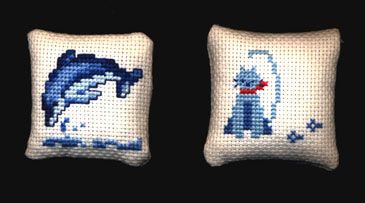 猫模様は妹用。日本ヴォ−グ社「クロスステッチ図案集」参考